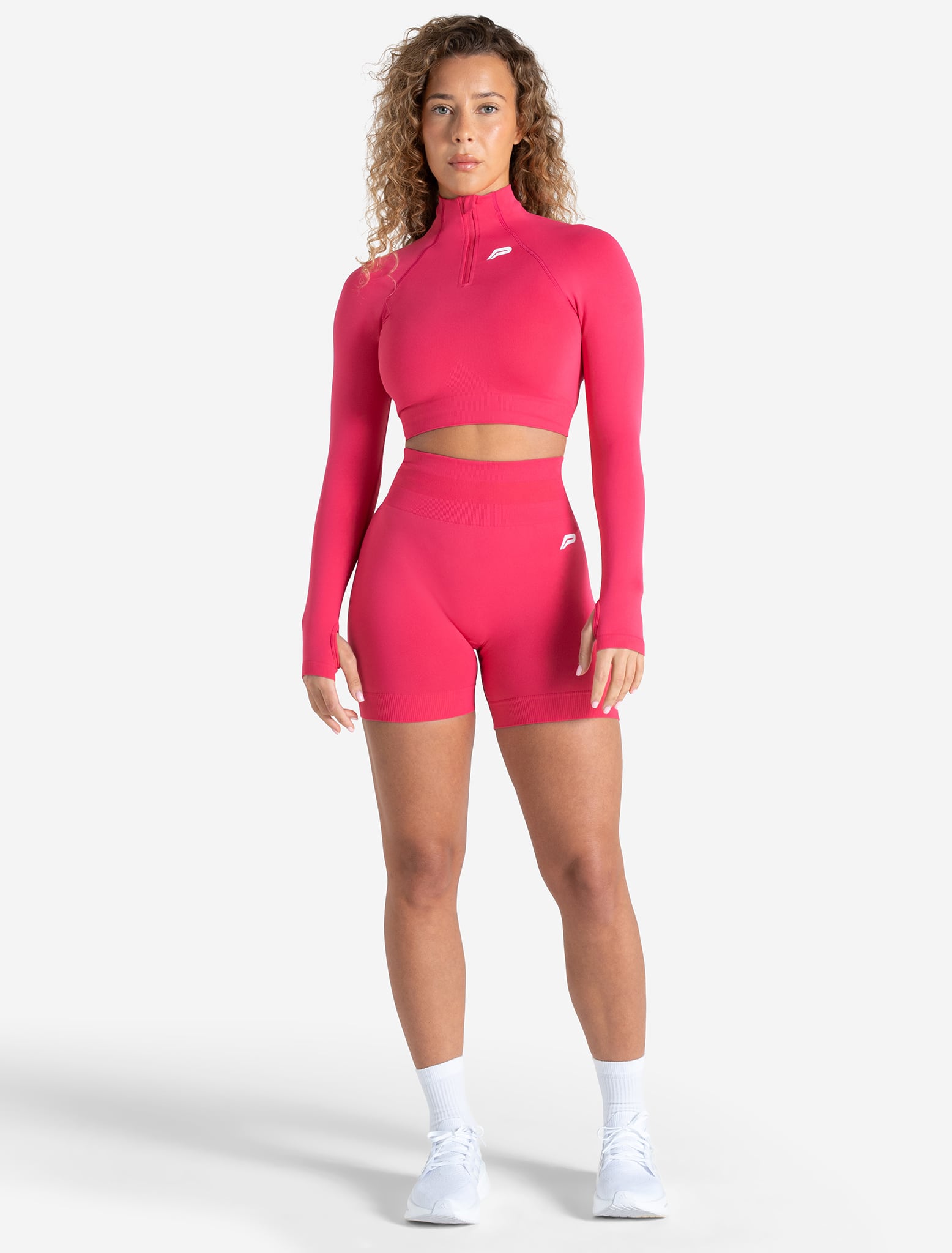 Reach for the Scrunch Seamless Crop ½ Zip for next-level performance and style. Its buttery-soft, ultra-stretchy fabric allows free movement with a midriff crop that keeps you cool and dry. Thumbholes and a ½ zip provide added comfort and a put-together look to complete your gym fit. Ideal for training, running, and everyday wear.