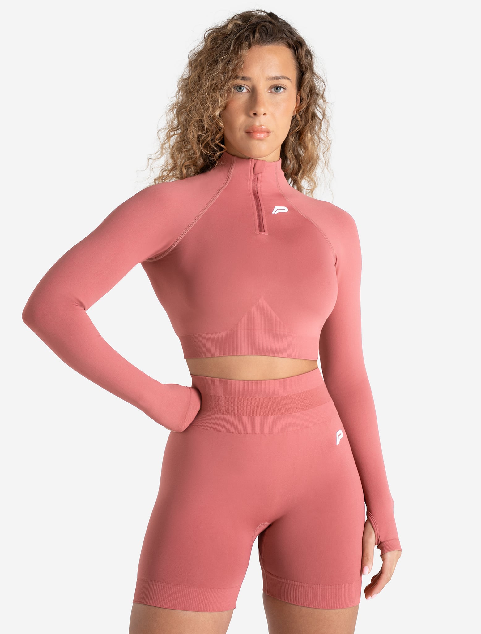 Reach for the Scrunch Seamless Crop ½ Zip for next-level performance and style. Its buttery-soft, ultra-stretchy fabric allows free movement with a midriff crop that keeps you cool and dry. Thumbholes and a ½ zip provide added comfort and a put-together look to complete your gym fit. Ideal for training, running, and everyday wear.